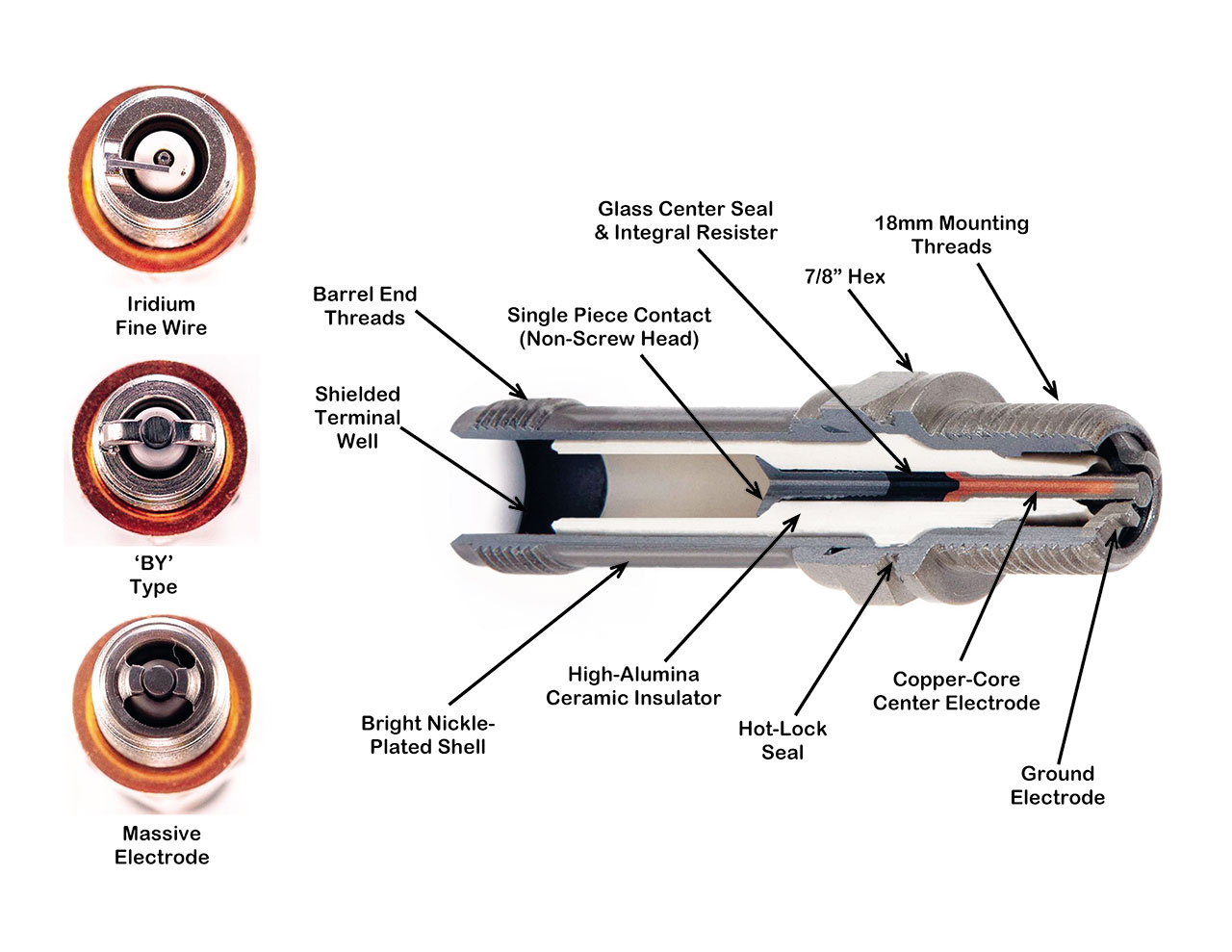 21st century ‘fired in’ resistor replaces the multipart screw, spring, and carbon pile stack up used in competitive plugs and known to suffer from resistance value instability that can cause misfires, wasted fuel, and engine roughness.